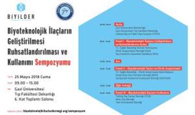 BİYİLDER olarak 25 Mayıs 2018 tarihinde Gazi Üniversitesi Tıp Fakültesi Dekanlık Binası 6. Kat Toplantı Salonu’nda “Biyoteknolojik İlaçların Geliştirilmesi, Ruhsatlandırılması ve Kullanımı” başlığıyla tek günlük bir sempozyum gerçekleştirilecektir.