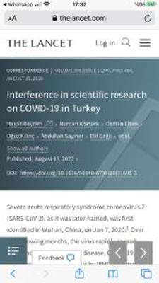 The Lancet'e Türk Toraks Derneği tarafından gönderilen yazıda Sağlık Bakanlığı tarafında konulan Etik Kurul öncesi bakanlıktan izin alma koşulunun doğurduğu sıkıntılar anlatılıyor.