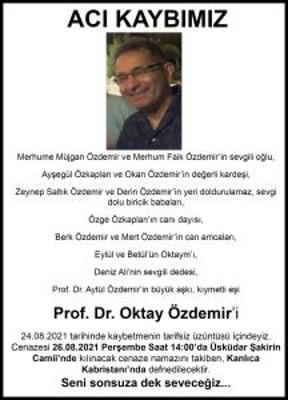 Değerli kardeşimiz, dostumuz Prof. Dr. Oktay Özdemir 26.08.2021 tarihinde saat 14:00'da Üsküdar Şakirin Camii'nde kılınacak Cenaze namazını izleyerek Kanlıca Kabristanında defnedilecektir.