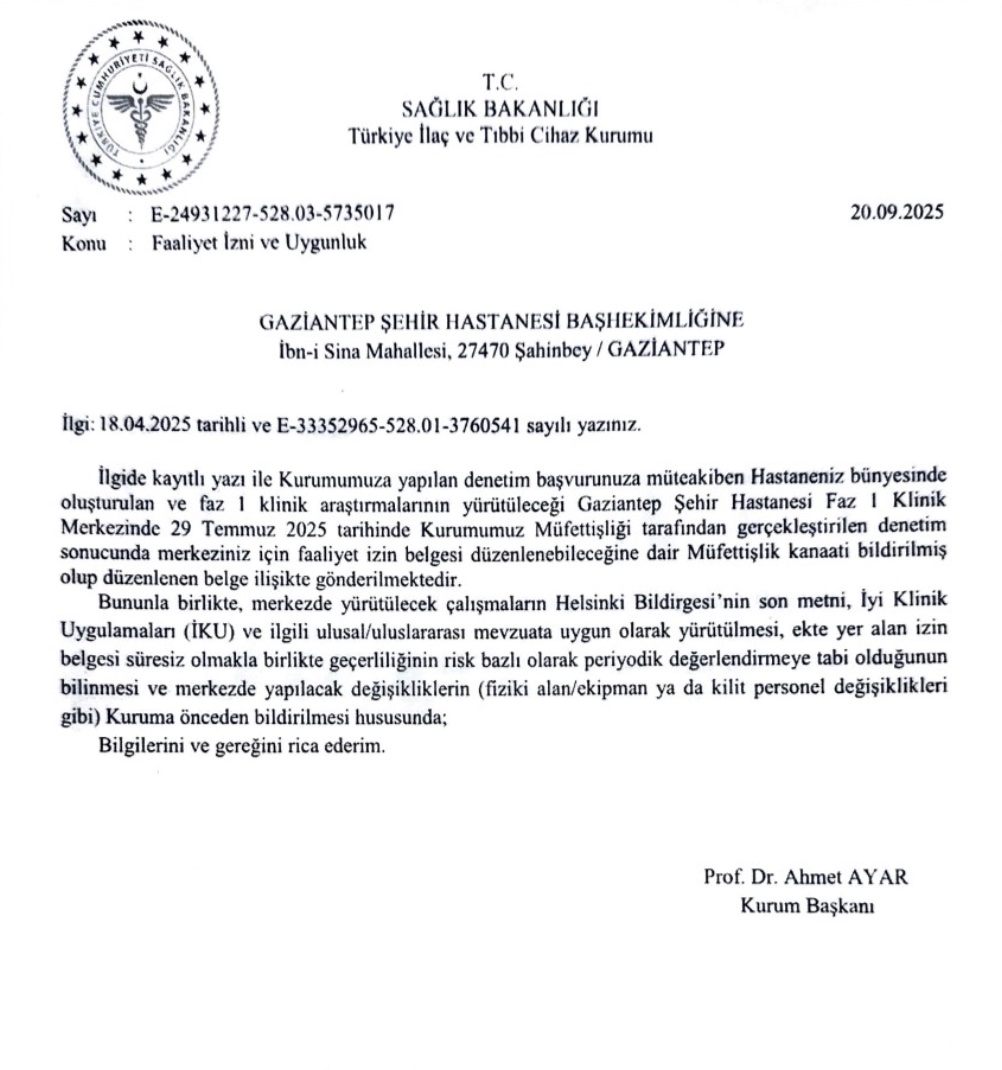 Gaziantep Şehir Hastanesi Faz I Klinik Araştırma Merkezi onay aldı...